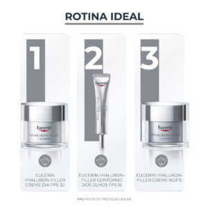 Eucerin Hyaluron-Filler 3x Effect Creme Olhos Antirrugas FPS 15 preenche rugas profundas da área dos olhos, estimula a produção de colágeno e ácido hialurônico e defende a pele da degradação do ácido hialurônico com a Tecnologia 3x Hyal Effect, que combina Ácido Hialurônico, Saponina Bioativa e Enoxolona. A fórmula também inclui Filtros UVA e UVB para prevenir o envelhecimento causado pela radiação solar. Com resultados visíveis em 2 semanas, tem textura cremosa e de rápida absorção. É ideal para todos os tipos de pele.NART: 63536-03400-21